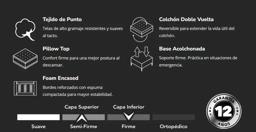 ✔ Garantía de 12 años: Un respaldo de calidad que brinda seguridad en la inversión, asegurando un descanso optimo por muchos años.