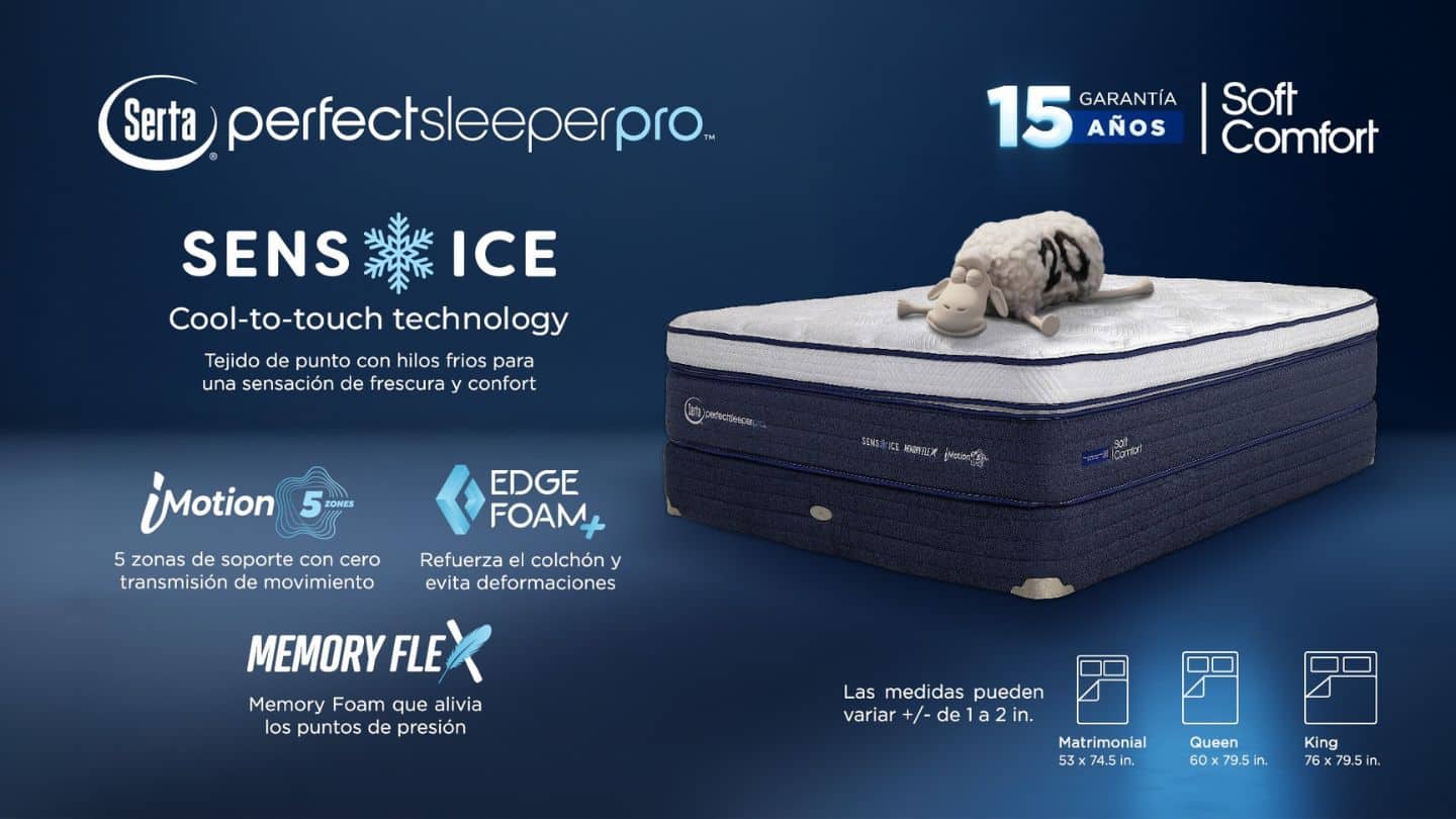 Descubre el equilibrio perfecto entre confort, frescura y soporte con el nuevo colchón Serta Perfect Sleeper Pro Soft Comfort, diseñado para quienes buscan dormir profundamente y despertar renovados cada día. Su tecnología SENS⁕ICE Cool-to-Touch incorpora un tejido de punto con hilos fríos que proporcionan una sensación de frescura inmediata al contacto, ideal para el clima cálido de Guatemala.