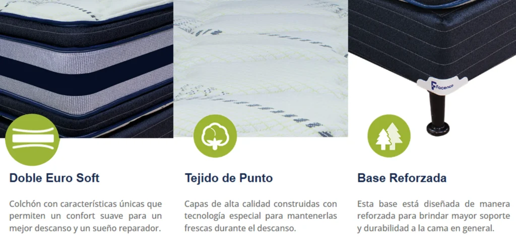 | Descripción breve | Un Colchón que cuenta con Doble Euro Soft Pillow de 3″ de acolchonado en ambos lados, ideal para quienes buscan una sensación de suavidad sin sacrificar soporte, con tela Piqué para mayor frescura. |